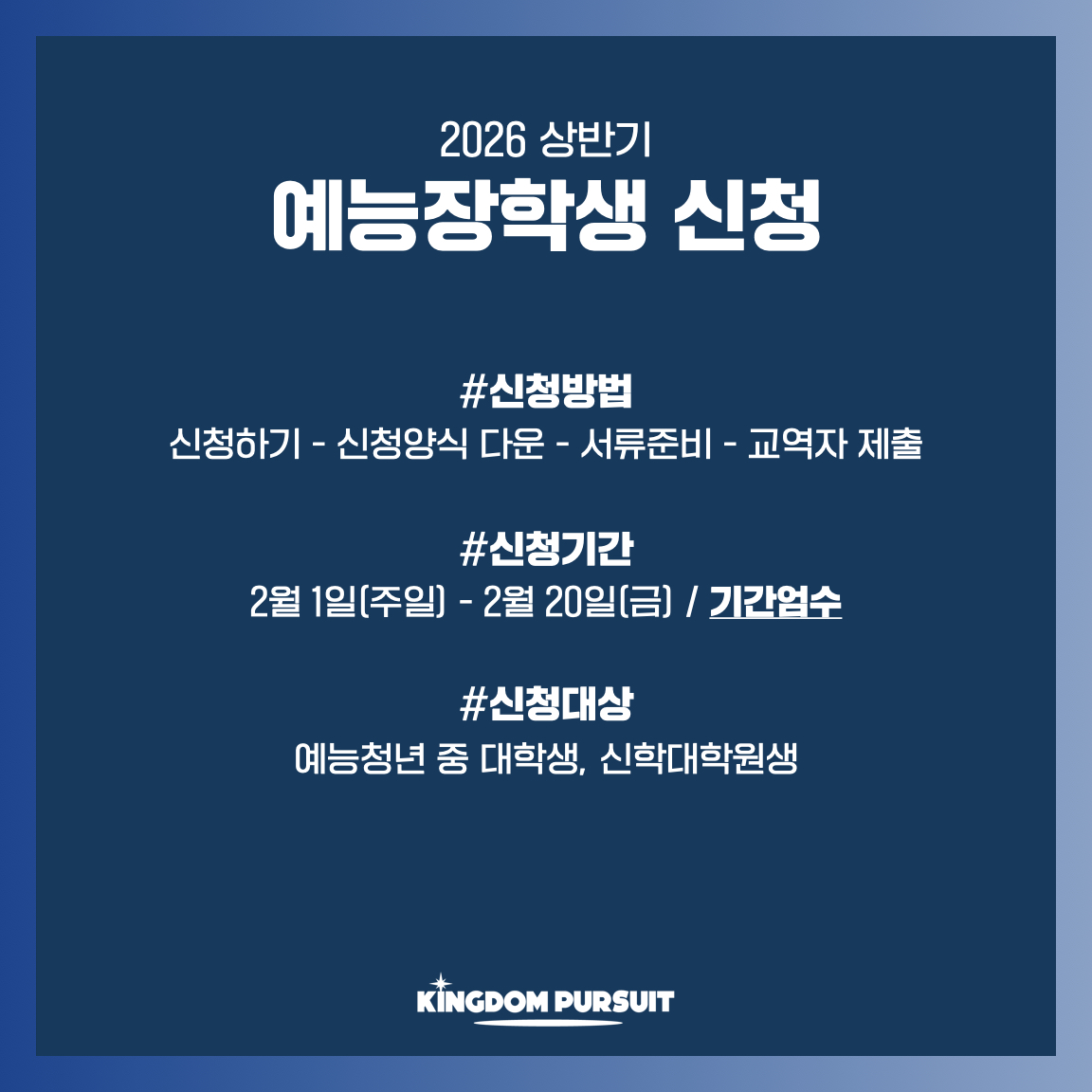 2026 상반기 예능장학생 신청