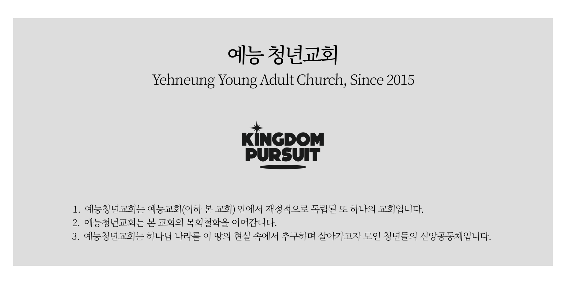 예능청년교회 Yehneung Young Adult Church, Since 2015.